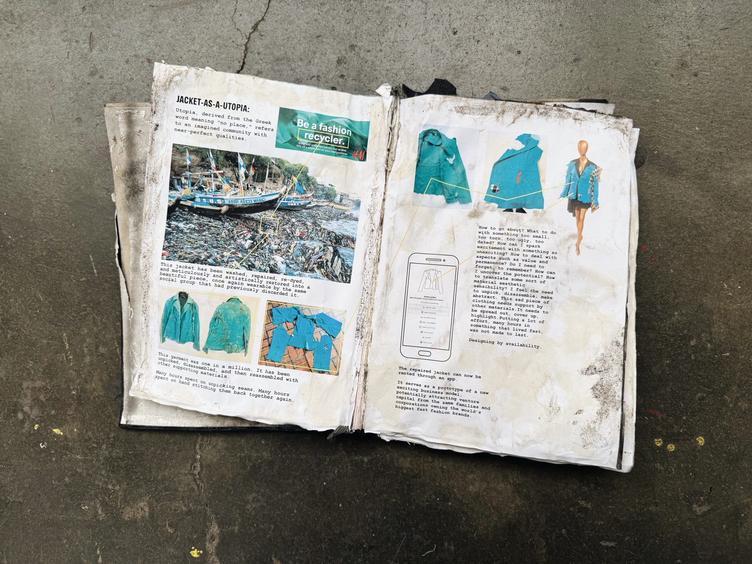 Det konstnärliga projektet sammanfattades i en bok som behandlades på samma sätt som våra kläder. Kasserad, slängd utomhus, lämnad till elementen.