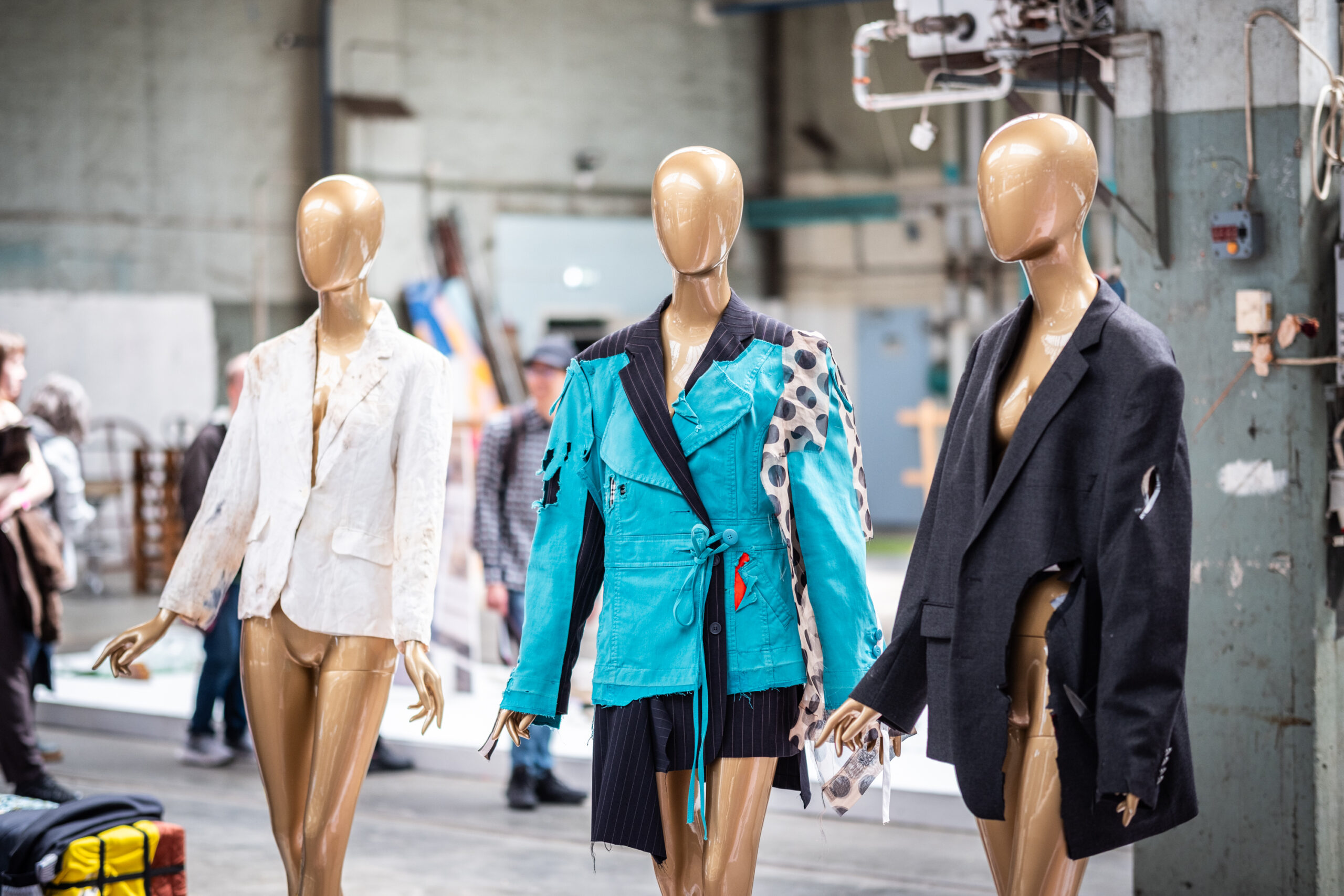 2. UTOPIN: Ett lågkvalitativt kavajplagg som var väldigt slitet återbrukades av Anna Lidström. Hon färgade, demonterade och byggde om det med material från sitt eget arkiv, ett arbete som tog många timmar i anspråk. Om man multiplicerar den tiden med alla de plagg som slängs så ser man snabbt att den här typen av löften om återbruk är en utopi.